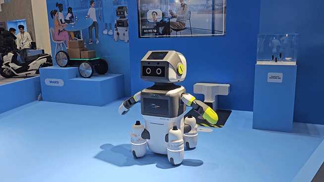 삼성SDI 부스에 전시한 로봇 달이 (영상=지디넷코리아)삼성SDI는 "최근 OEM들의 전동화 계획이 지연되는 분위기는 있으나 피지컬 AI 기술 적용으로 로봇 시장이 빠르게 성장하고 있고, 탑재 공간이 제한적이고 높은 안전성과 출력을 요구하는 디바이스의 특성상 전고체 배터리에 대한 니즈가 커지고 있다"며 "이에 여러 로봇 업체들과 전고체 배터리를 활용한 협력 방안을 모색하고 있다"고 강조했다.