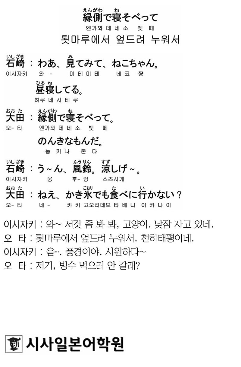 [시사일본어학원의 초단기 일본어 회화] 툇마루에서 엎드려 누워서