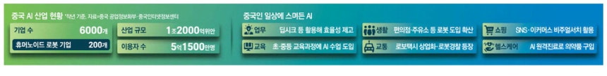 이처럼 중국에서 AI 저변이 급속도로 확산되는 것은 중국의 '응용 우선' 전략과 방대한 사용자 기반이 결합된 결과로 해석된다. 응용 우선 전략이란, 완벽하지는 않지만 당장 쓸 수 있는 수준의 AI를 산업이나 생활 전반에 도입하면서 기술을 고도화하는 것을 뜻한다.