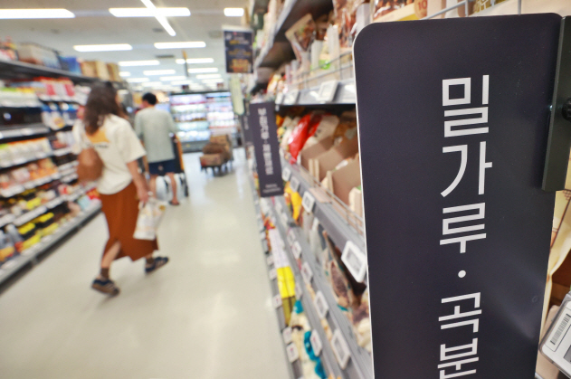 [서울 시내 한 대형마트 밀가루 코너 (연합뉴스 자료사진)]